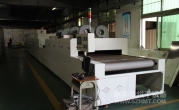 2、外形尺寸(約):總長24500mm*總高1740mm*總寬1890mm,地面到網帶的高度為950-1050mm,爐體內進料高度為150mm;烘干部分總長14000mm,分7段獨立控溫(每段4個測溫熱電偶),每段2000mm。冷卻段長4000mm,UV區2000mm,前后緩沖區各長500mm,進料部分長2000mm,出料部分長1500mm, 爐體前后大梁上方裝有急停開關,共4個。